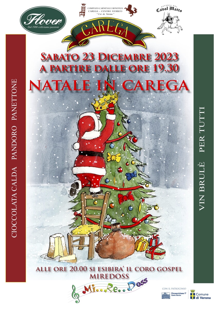 Il Comitato Carnevale Benefico Carega, con il patrocinio della prima circoscrizione, organizza il tradizionale “Natale in Carega”. La serata sarà allietata dalla musica del coro gospel MIREDOSS e da pandoro, cioccolata e vin brulè per tutti i partecipanti.