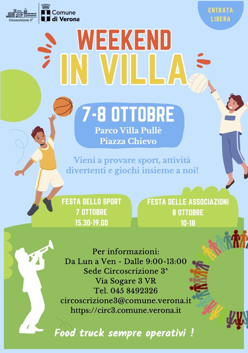 Un weekend per provare le attività sportive, artistiche e socio-culturali promosse dalle associazioni del territorio. Sabato 7 e domenica 8 ottobre il parco di Villa Pullè al Chievo si apre alla città per la prima edizione della manifestazione “Weekend in Villa”, evento organizzato dalla terza…