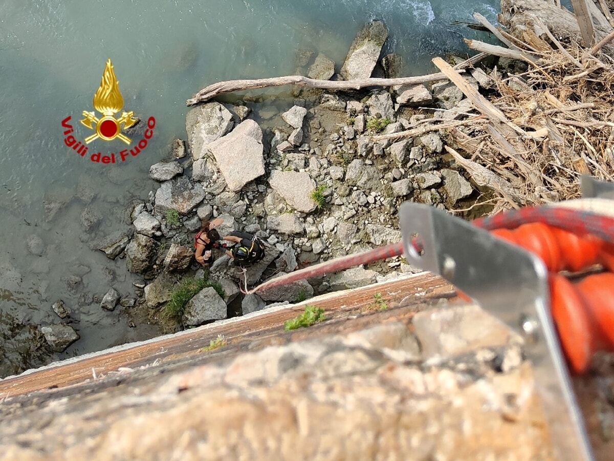Cane cade nell’Adige, padrona e passante lo salvano. Pompieri recuperano tutti
