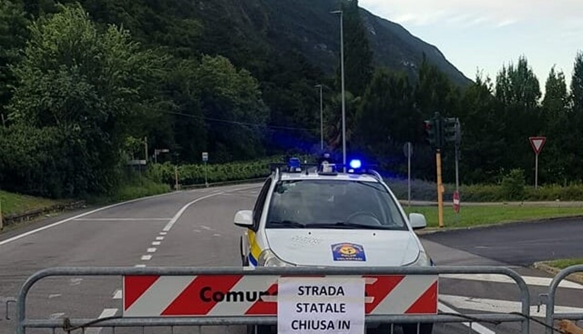 Chiuso tratto della SS 12 a Ceraino, strada transennata e traffico deviato
