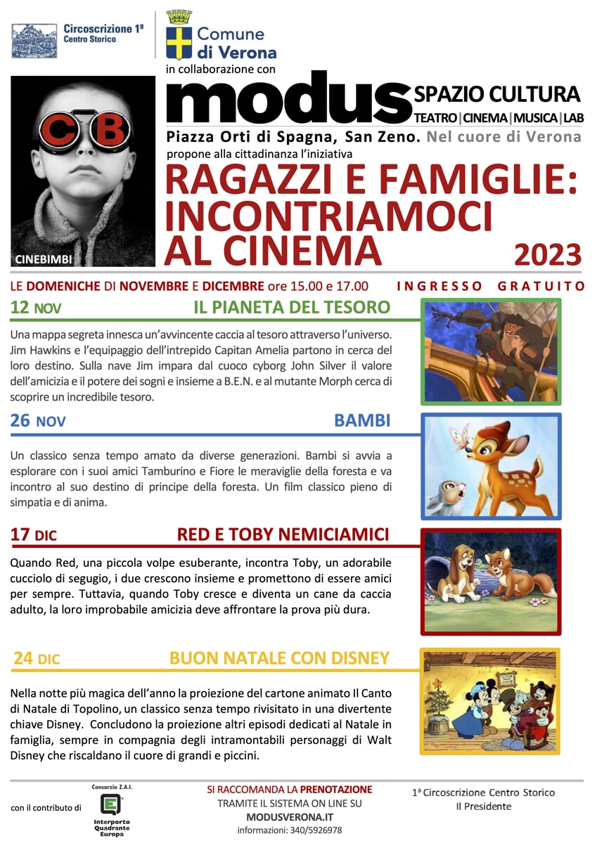 La Circoscrizione Centro Storico, in collaborazione con Modus Impresa Sociale e il contributo del Consorzio ZAI, organizza l’edizione 2023 della Rassegna “CINEBIMBI. Ragazzi e Famiglie: incontriamoci al cinema”. Un ciclo di quattro proiezioni cinematografiche scelte tra i migliori titoli della…
