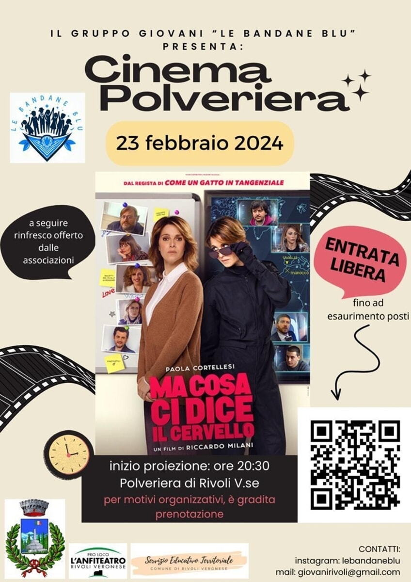 Il gruppo giovani di Rivoli Veronese “Le bandane blu” presenta il secondo appuntamento dell’evento “Cinema Polveriera”. Venerdì 23 febbraio alle ore 20.30 verrà proiettato presso la Polveriera di Rivoli Veronese il film “Ma cosa di dice il cervello”, una commedia con Paola Cortellesi.