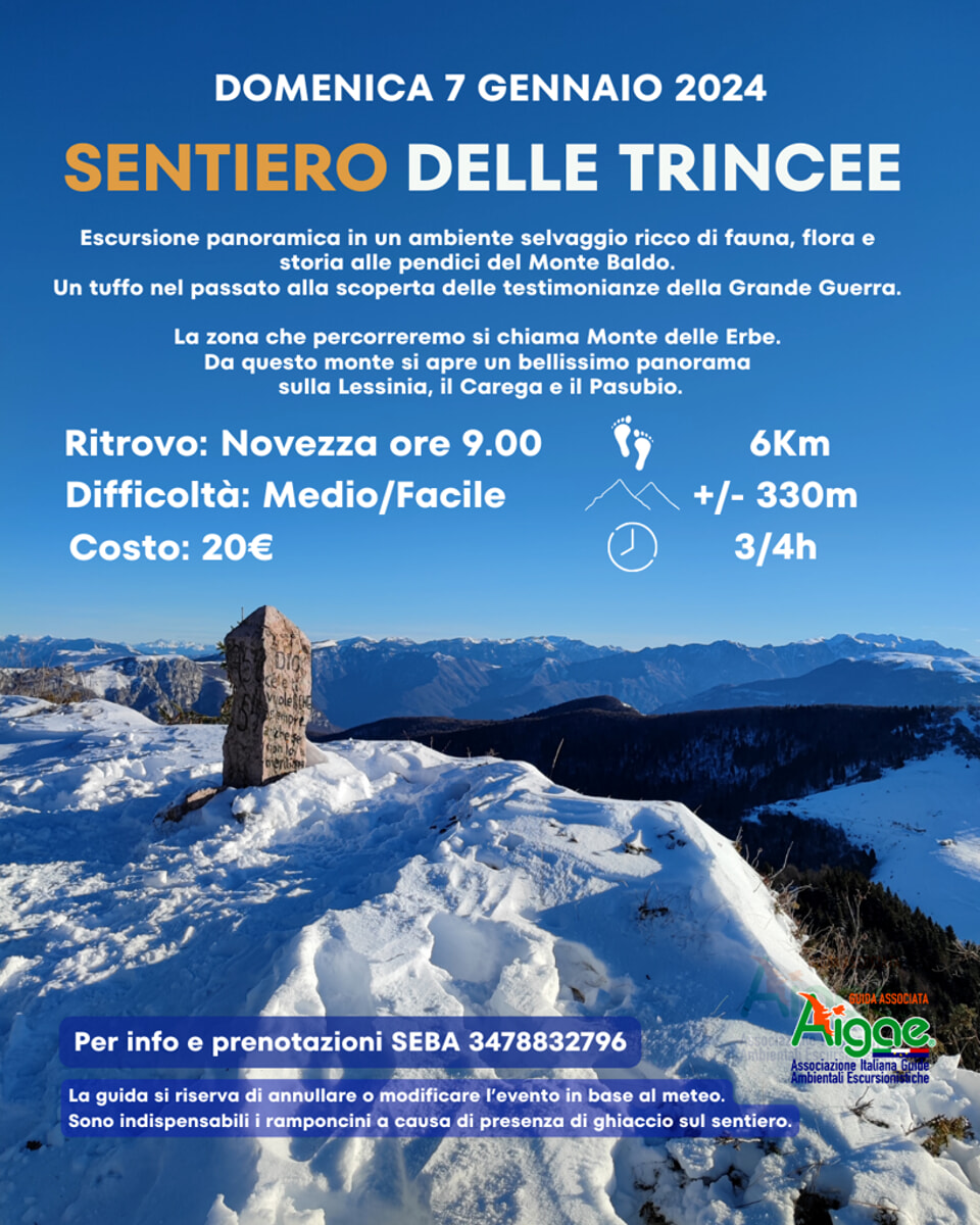 Escursione guidata in un ambiente selvaggio ricco di flora, fauna e storia alle pendici del Monte Baldo. Un tuffo nel passato alla scoperta delle testimonianze della Grande Guerra.