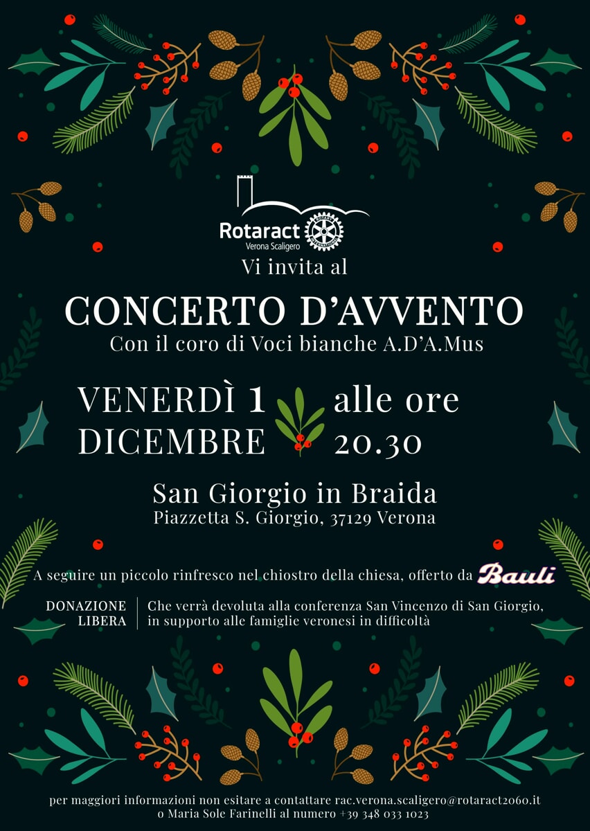 Venerdì 1 Dicembre il Rotaract Club Verona Scaligero aspetta tutti i veronesi al concerto di Natale alle 20.30, presso la chiesa di San Giorgio in Braida, organizzato in collaborazione con il coro Voci Bianche A.D’A.Mus di Verona. Un’iniziativa questa che i ragazzi del rotaract portano avanti da…