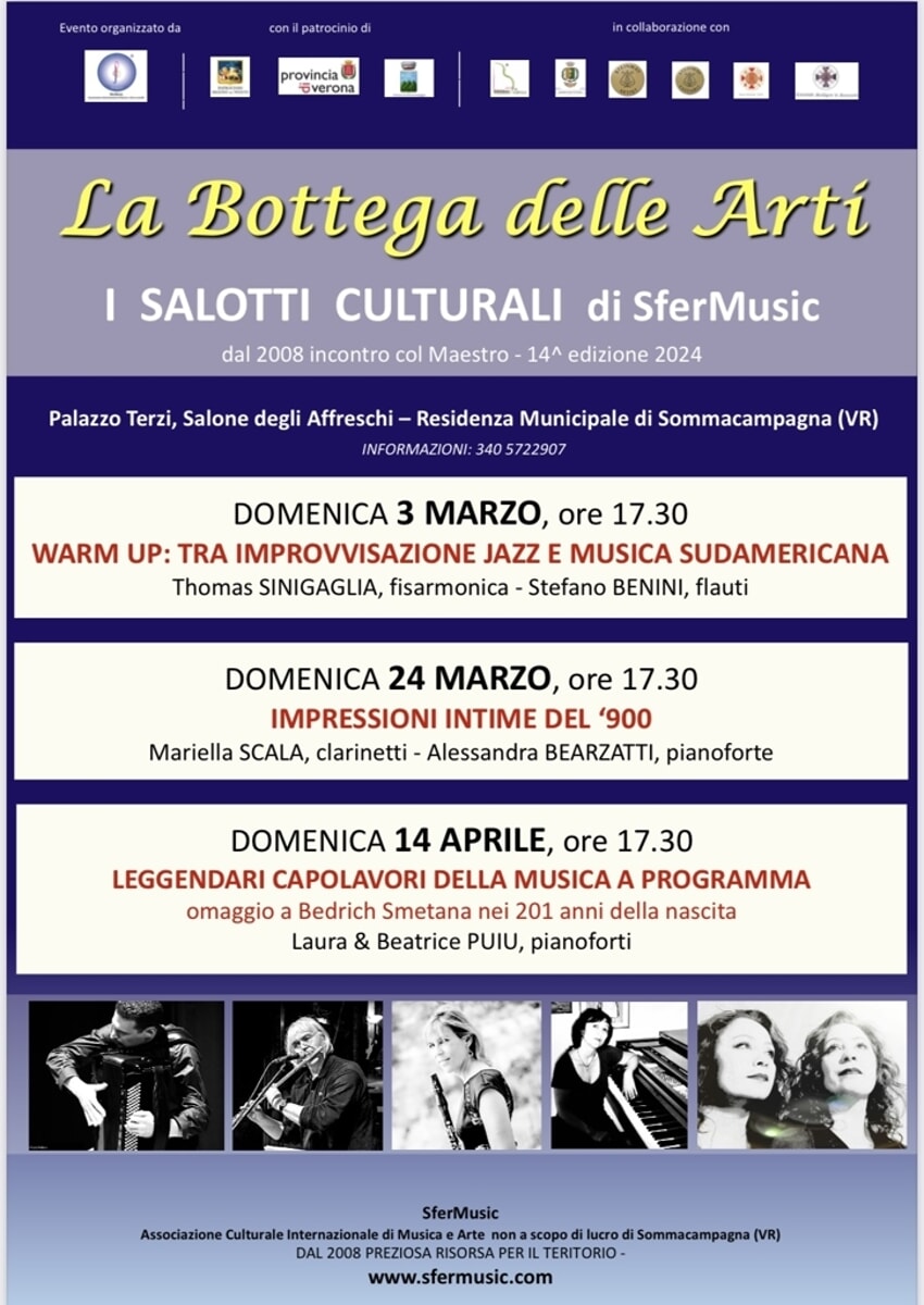 Dal 3 marzo ritorna l’atteso appuntamento dei Salotti Culturali di SferMusic, associazione culturale internazionale di musica e arte di Sommacampagna (VR), con ”La Bottega delle Arti-incontro con il Maestro”, realizzato in collaborazione con l’Assessorato alla Cultura del Comune di Sommacampagna…