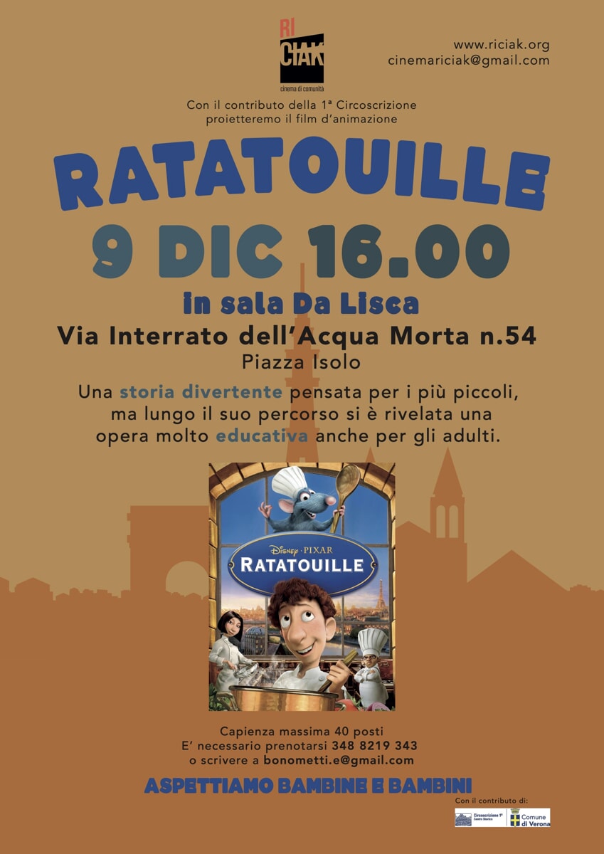 Proiezione gratuita del film d’animazione “Ratatouille” a Verona