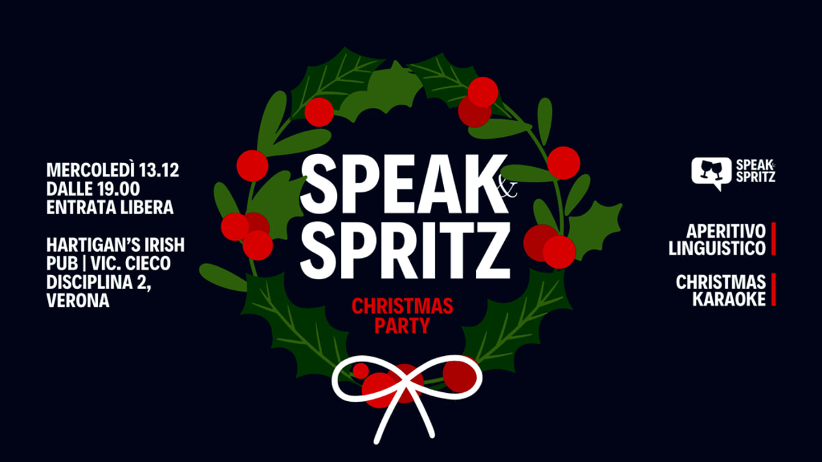 Ci vediamo mercoledì 13 dicembre per lo Speak and Spritz di Natale, con un aperitivo linguistico con varie attività in inglese a tema e un bellissimo karaoke natalizio per scatenare la Mariah Carey che è in te.