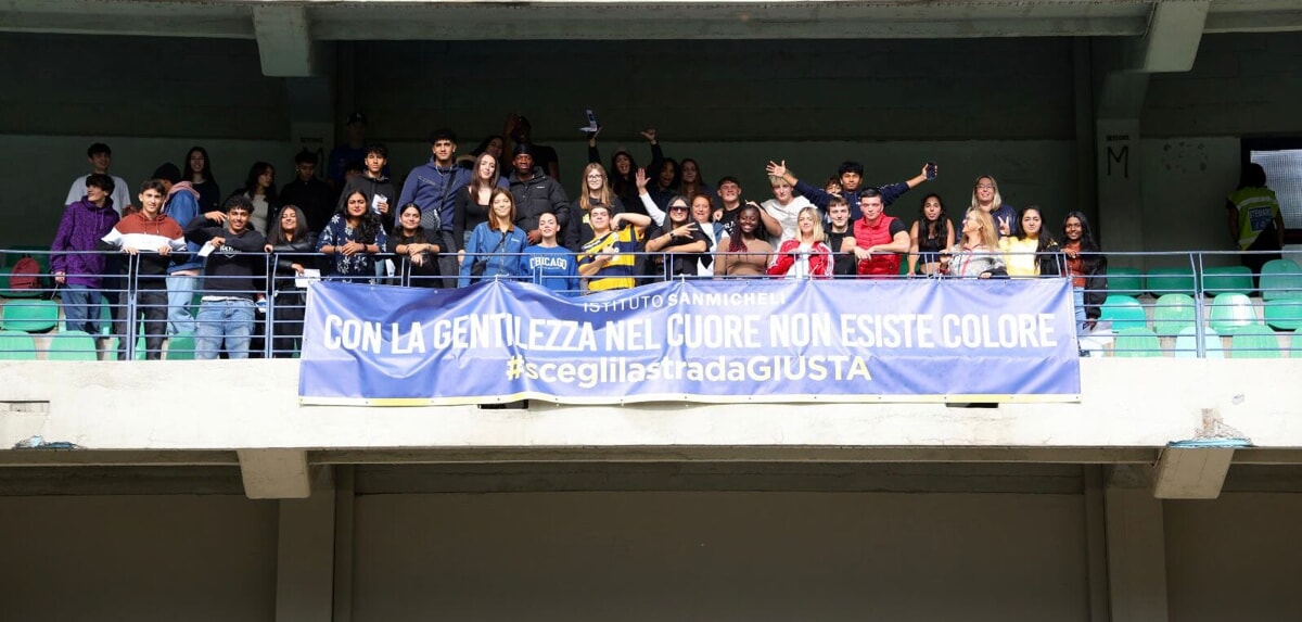 Striscione degli studenti al Bentegodi: «Con la gentilezza nel cuore non esiste colore»