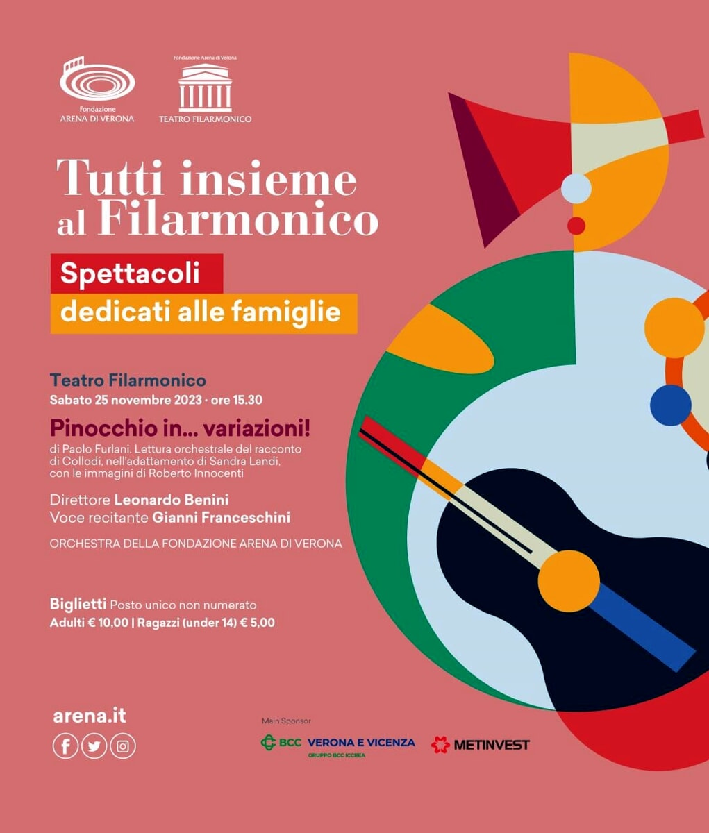 Fondazione Arena di Verona porta sul palcoscenico uno dei personaggi fiabeschi più amati di sempre. Sabato 25 novembre, alle ore 15.30, va in scena Pinocchio…in variazioni!, ultimo appuntamento della rassegna Tutti insieme al Filarmonico. Lo spettacolo, pensato per le famiglie con bambini dai 4…