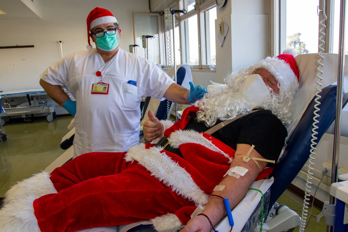 Vestito da Babbo Natale per donare sangue. «Il regalo più bello»