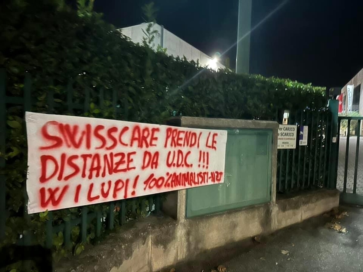 Videogioco anti-lupo dell’Udc svizzero, striscione degli animalisti alla Swisscare
