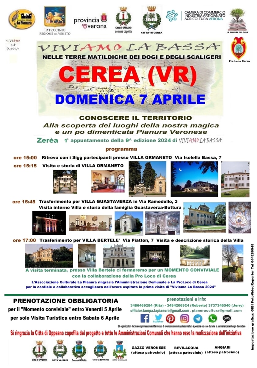 Finalmente parte la 9^ edizione di VIVIAMO LA BASSA , l’evento organizzato dalla Associazione Culturale La Pianura con il ramo “Pianura Cultura Sezione Turismo e patrocinato dalla Provincia di Verona, Regione Veneto, Camera di Commercio Industria Artigianato e Agricoltura Verona, Oppeano Comune…