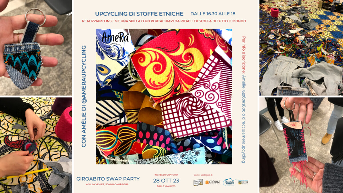 Durante l’evento di Giroabito – Swap party, sarà possibile partecipare al workshop di cucito creativo per creare un portachiavi o una spilla. Un pezzo unico, tutto tuo! Usando stoffe etniche e jeans di recupero. Con Amélie di AmeRà upcycling.